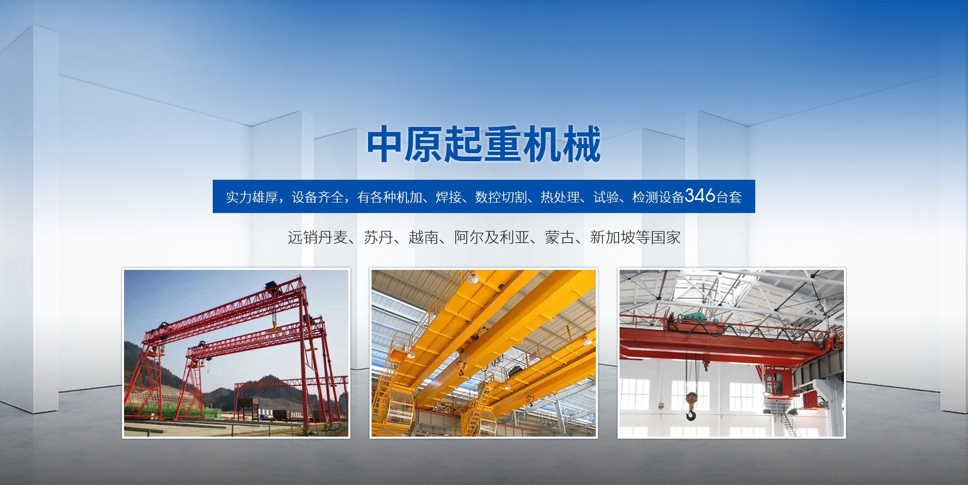 新鄉市中原起重機械有限公司成立于2000年,地處中原,輻射全國28個省市自治區,設外埠經銷處、辦事處268個。產品行銷工礦、建材、化工、冶金、電力、交通、鐵路、油田、港口等各個行業。遠銷丹麥、蘇丹、越南、阿爾及利亞、蒙古、新加坡等國家。  公司實力雄厚,設備齊全,有各種機加、焊接、數控切割、熱處理、試驗、檢測設備7臺;有機加工、熱處理、單、雙梁橋門機生產、檢測、安裝等9個車間,研究中心、運輸公司、安裝維修服務公司等機構,?  主要產品有:LD型1~20噸電動單梁起重機系列產品;5~600噸通用橋式、門式、冶金、上旋轉下旋轉電磁吊、絕緣、抓斗、防爆起重機系列產品;LH3~100噸葫蘆雙梁系列產品;MH5~32噸葫蘆門式系列產品;0.5~40噸CD1、MD1鋼絲繩電葫蘆系列產品;HS1型0.5~20噸手動葫蘆系列產品;0.5~10噸環(huán)鏈電動葫蘆系列;0.5~40噸彎道電動葫蘆系列產品;裝卸橋、造船門機、架橋機、鑄造吊和水電大噸位起重機系列產品。  公司建立了強有力的質量保證體系和生產過程的質量控制系統,嚴格執(zhí)行國家設計、生產標準,有嚴格的生產工藝過程和標準,嚴格的檢驗、檢測標準和手段。